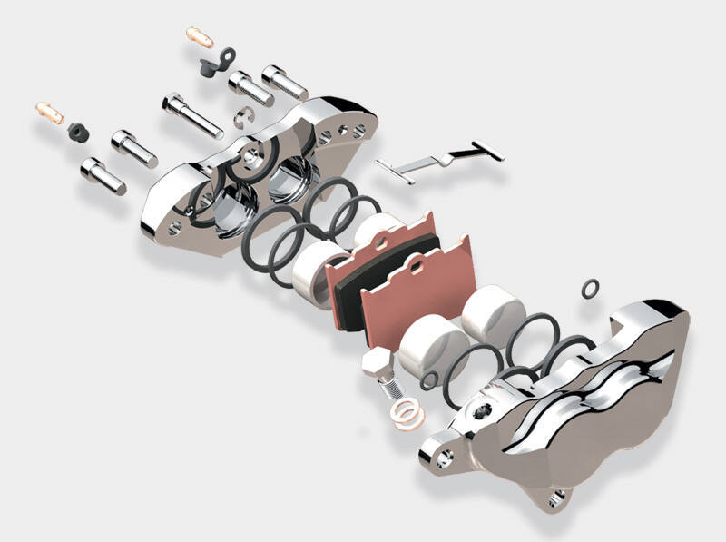 The other major design feature is the incorporation of dual-piston seals. What this does is provide each piston with 2 layers of protection, and a special wiper seal that prevents contamination from attacking the main pressure seal thereby promoting long-term leakproof operation. In addition, this new sealing system improves piston pullback which reduces brake pad drag on the rotor.