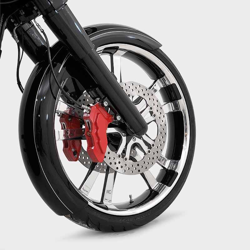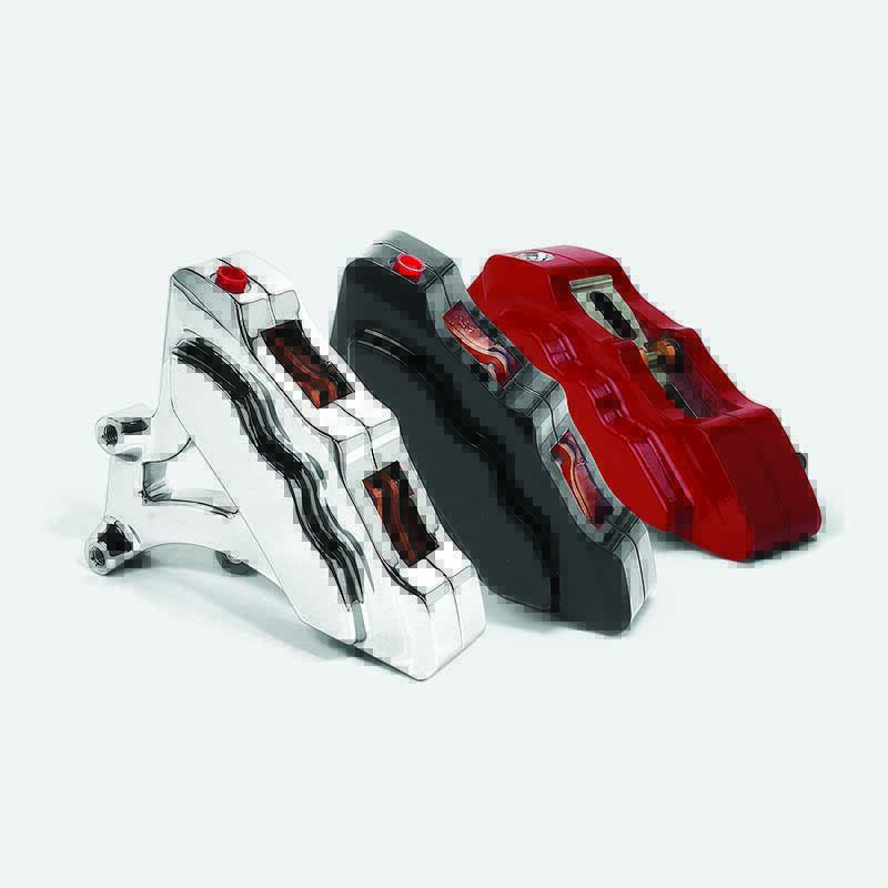 This exciting, new six-piston differential bore caliper for 18-inch diameter rotors is the first direct bolt-on, purpose-built caliper for the Big Wheel Bagger market. The BFC-18 caliper features a completely redesigned and upgraded six- piston configuration with bigger bores and larger brake pads, which deliver increased overall braking performance.