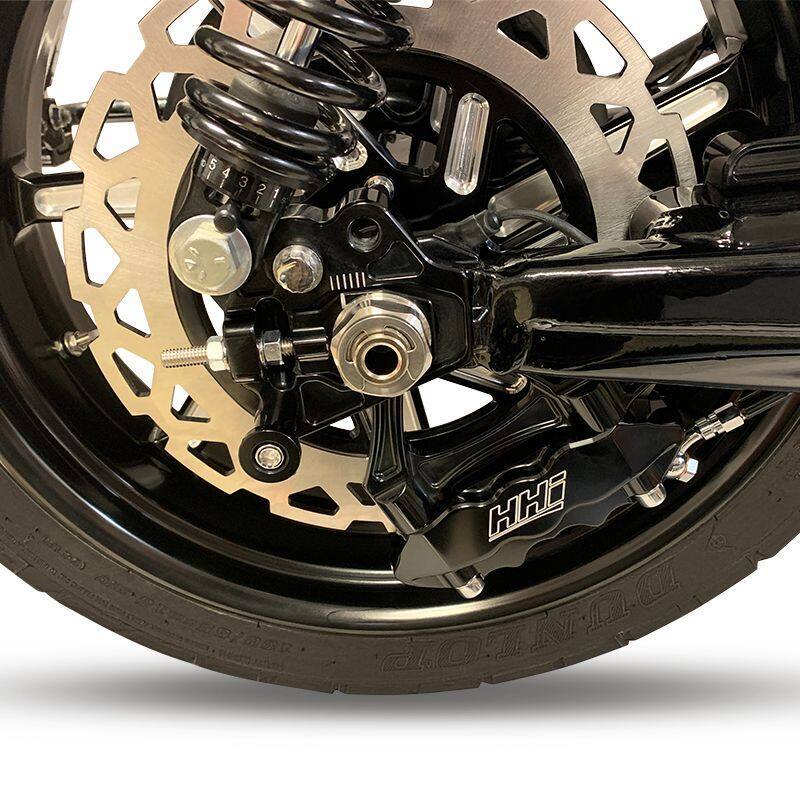 The New HHI Dominator Axle Adjuster with Integral Shock Relocator Kit for 2009 to 2025 FL Touring Models is now available.