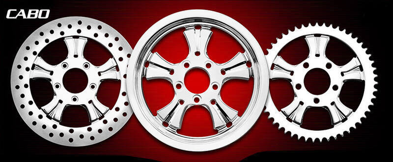 The Cabo looks amazing on just about any bike with its 5 classic milled spokes. The distinct chiselled lines contrast the smooth rim lip used on many of the HHI / Renegade Wheels. . Simplistic, understated lines complement any touring bike or a custom build.  Available with matching True Floating Brake Rotors in 11.5,11.8,13, & 18-inch sizes and matching air cleaner, pulley or sprocket to finish off your design package. The Cabo Black Wheel comes in standard sizes of 16 " to 32" and the newest sizes of 18, 21 & 23 x 5.5 for front-wide tire applications.
