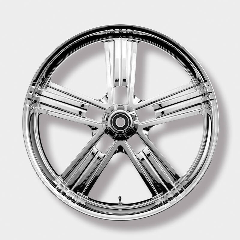 Pacific Wheels are a classic 5-spoke design looks great on Touring bikes and Custom Bikes alike. There are matching air cleaners, pulleys or sprockets available. Full-size range from 16" to 32", and our latest Front Wide Tire sizes of 18, 21 & 23 x 5.5.