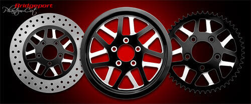 The Bridgeport Phantom Cut Wheel will enhance the look of your bike like nothing else! This intentionally geometric, Forged Billet 14-spoke wheel looks fantastic with its angular 3D machined spokes and extensive machining on the rim. The Bridgeport fills the need for a modern robust spoke design. Available in 16" to 32”- inch diameters, with matching Floating Brake Rotors in 11.5,11.8,13 and 18-inch sizes, with a matching Pulley or Sprocket. Phantom Cut wheels are now available in Black, Aztec Red, Inca Gold, and Cobalt Blue.