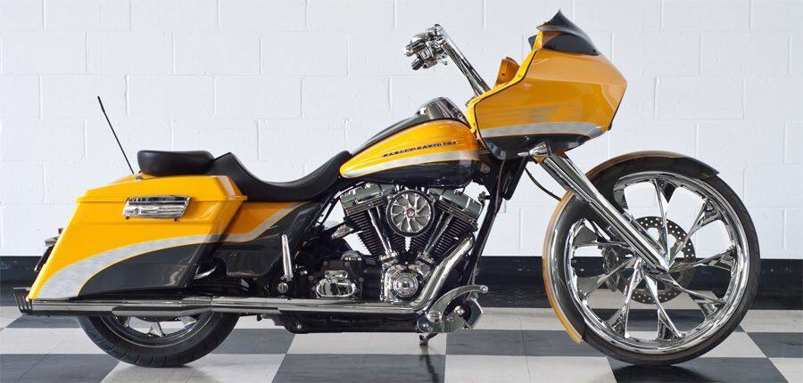 Build #16 HHI Hellrazor RG Reaper Handlebars, Neck Rake builders kit, forward controls, 13" Rotor, 6 piston caliper, Torpedo front end, 26" fender and fender spacers, Brake hose kit, and Renegade 26" Whistler Chrome front wheel.