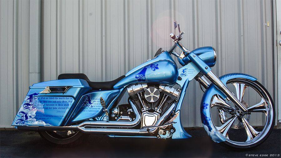 Build #32 HHI Raked 2011 Road King 26" Renegade Tahoe wheel, Sinister Cutting Edge Tank and side cover kit, Bad Dad rear fender and bags, HHI bars, HHI neck rake kit, HHI caliper, HHI lower legs, HHI cam cover and clutch cover.