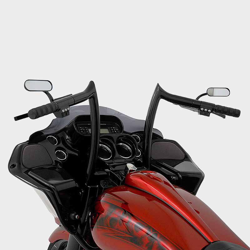 Build #56 2013 Road Glide, HHI Bomber Lower Legs, HHI Forward Control, HHI 14" RG Reaper Internally Wired Handlebar System, Renegade 23" front Phantom Cut Whistler Wheel & Matching 13" Rotor, rear wheel 17"x6.25" with 200mm tire ,Freedom True Dual Right Side Under Exhaust, Thundermax ECM, 107" Motorbuild, port and polished heads, S&S Gear drive cam, Baddad 4 1/2" stretched bags with speaker lids, Upgrade stereo, Yaffe steel gas tank and flared side covers, Yaffe rear fender. Hogtunes upgraded stereo system.
