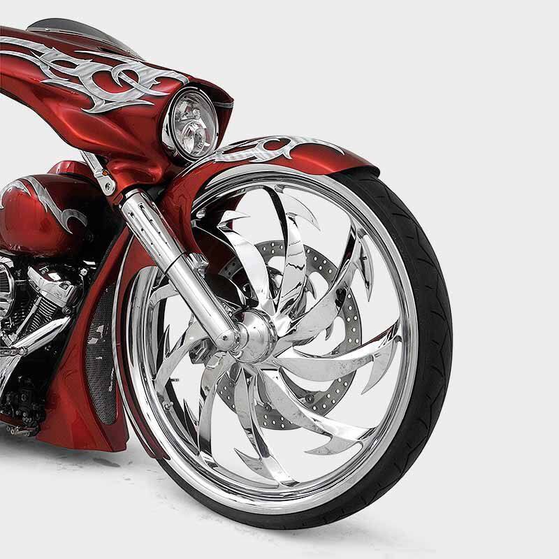 Build #58 17 Street Glide, HHI Short Neck 9-12, 30" Builders Kit. HHI Bomber Lower Legs, HHI Steel Wrap Fender, HHI Billet Tapered Fluted with Accents Fork Covers, 12" HHI SG Reaper Internally Wired Handlebar System, HHI Slotted Forward Controls. HHI 6 Piston Caliper, Renegade 30" Chrome Spearfish Wheel & Matching 18" Rotor, Freedom Performance 2 into 1 Turnout Exhaust.