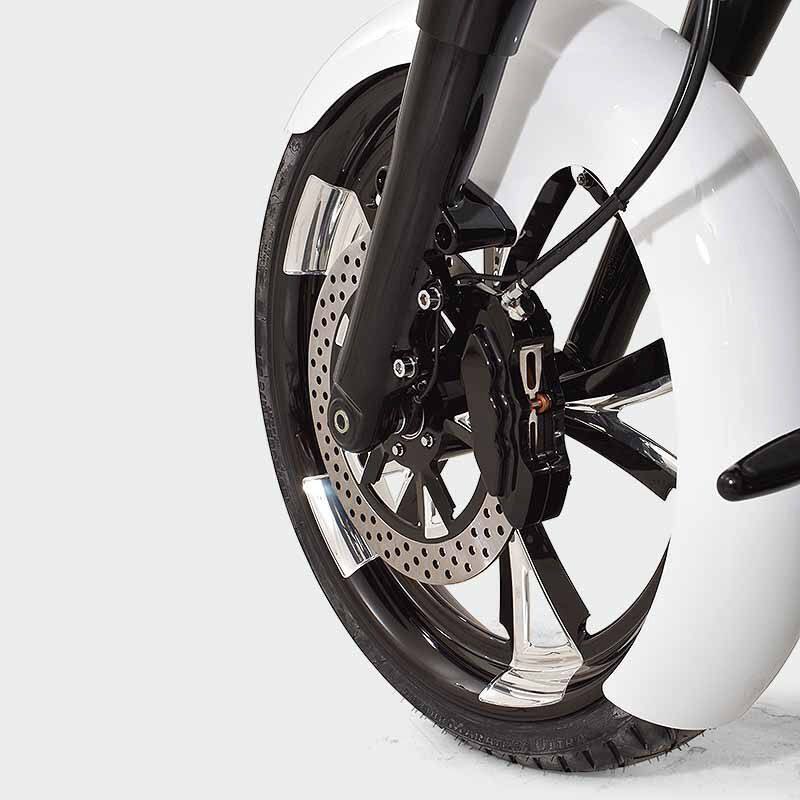 Build #61 2018 Fatboy, HHI 23" Spartan Phantom Cut Front Wheel and 18x8.5 rear wheel with matching 13" front rotor and 11.5” rear rotor, Metzeler 130-23” front & 260-18 rear tire. HHI 23" Wrap Fender, HHI 6 piston Front Caliper, HHI Softail Forward Controls. HHI 4 degree Raked Triple Tree, 14" HHI Raider Internally wired Handlebar System.