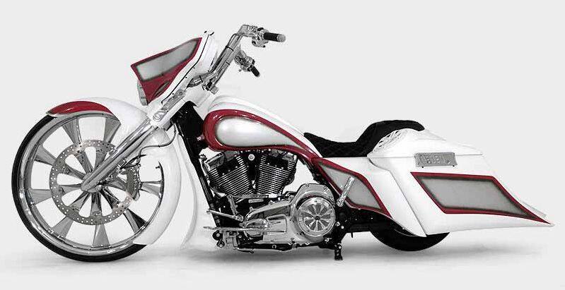 Build #39 Built in just 6 weeks, this Custom Build for Duane Troy in Maryland, the bike features the 18 inch HHI BFBK Brake upgrade, HHI 14 inch Reaper Bars. HHI Short Neck Triple Tree and Neck Kit, HHI Billet Lowers, an HHi 4 piston rear brake kit, and Renegade Lincoln wheels, with a 30 inch on the front and a 16 on the back.