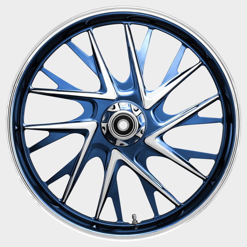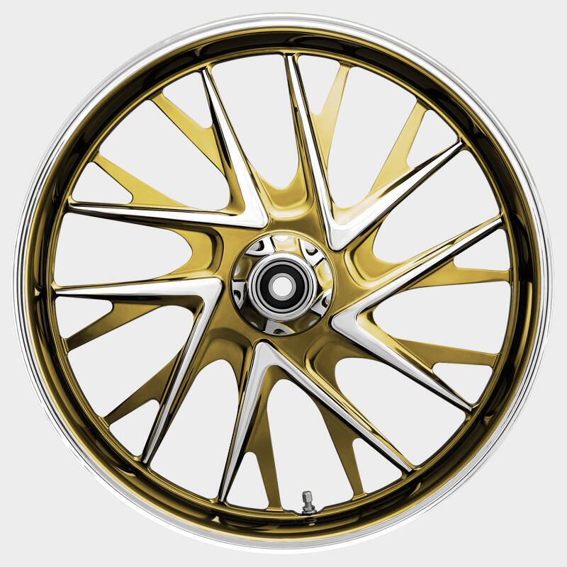 All HHI / Renegade Custom Wheels come in 16" to 32" diameters with matching 11.5,11.8, 13, & 18-inch True Floating Cog Drive Brake Rotors. All chrome wheels can also be custom ordered in Aztec Red, Cobalt Blue & Inca Gold.