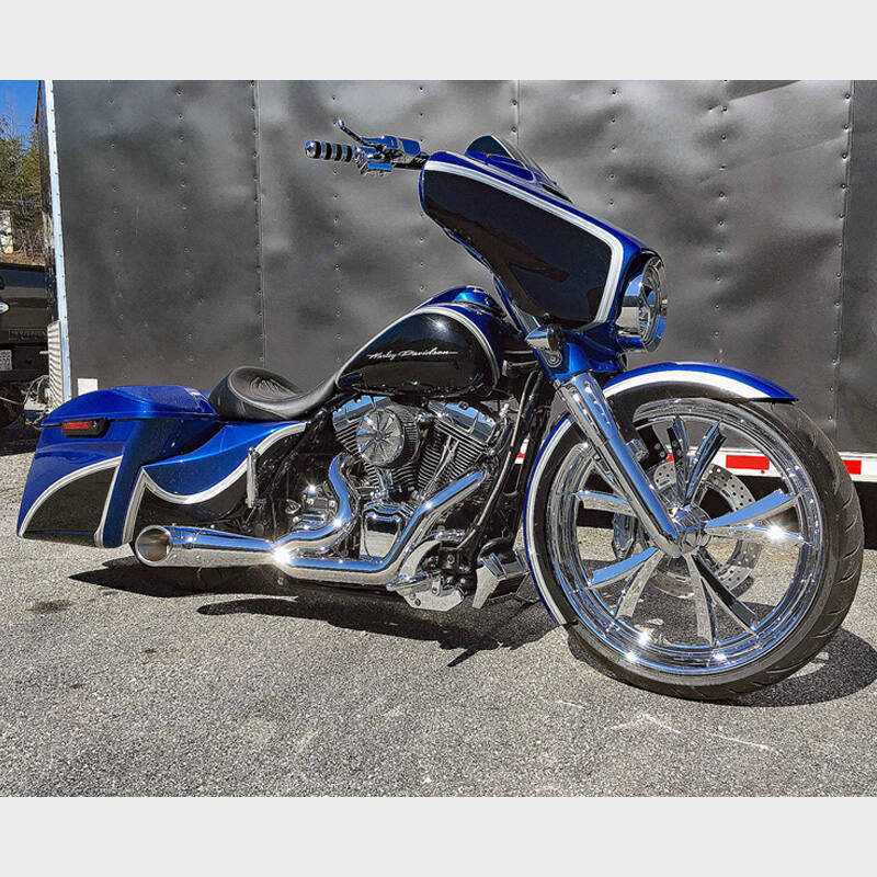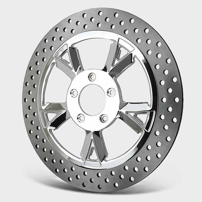Delivered in a full range of sizes from 16 to 32 inches this wheel is available in Chrome and Black. Matching brake rotors in 11.5, 11.8, 13, ,& 18 complete the package.