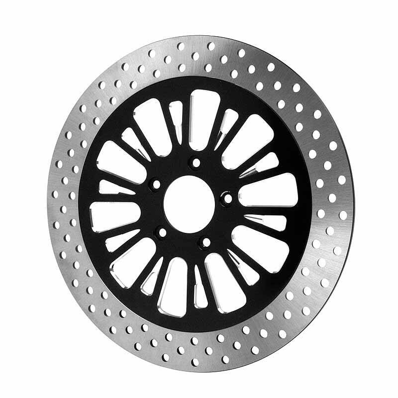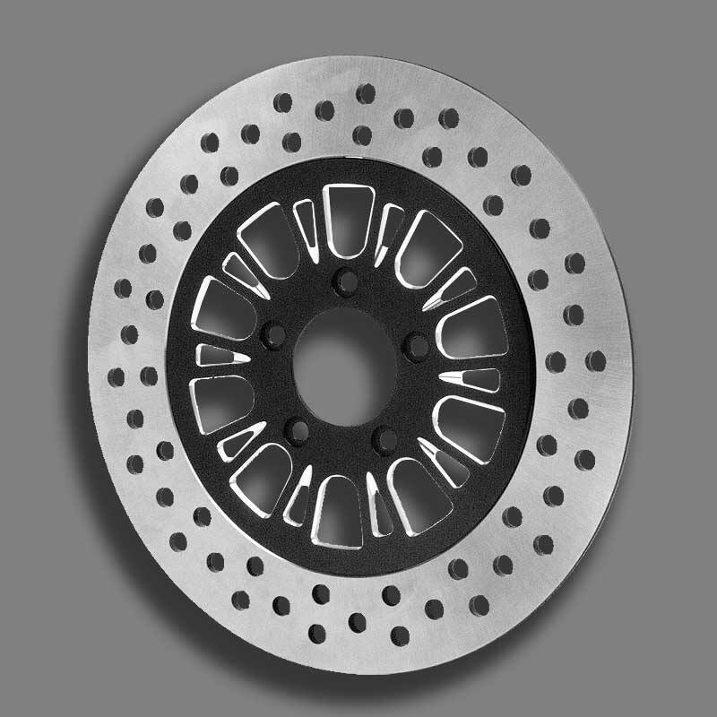 Innovative Cog Drive Rotors From HHI / Renegade Wheels like the Cobra come in Universal and Matching Wheel Designs in 11.5, 11.8, 13 & 18 inch sizes. Delivered in standard Chrome, Black or Phantom Cut finishes, with custom ordered colors of Aztec Red, Cobalt Blue, Inca Gold & Blaze Red available.