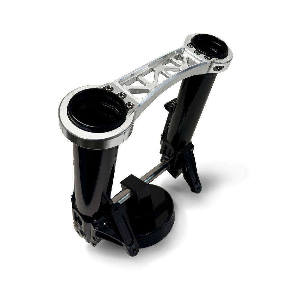 The second package features our Integral Billet Fork Brace Kit designed to seamlessly mount on a brand new set of Dominator Billet Legs created specifically for the fork brace kit. Your performance bagger build just stepped up a notch in detail. Here is a link to our Dominator Track Style Fork Leg Kit with all the Integral Fork Brace options