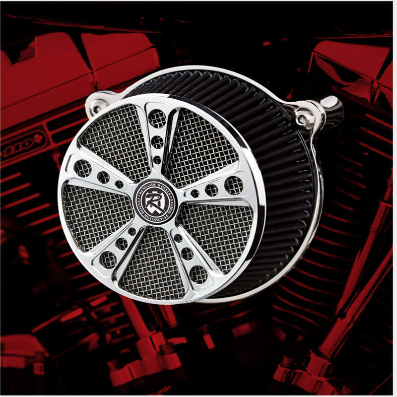 HHI Custom Air Cleaners for Harley Davidson Motorcycles. The Fuelie is a HHI design made by Renegade exclusively for HHI. Available in chrome finish.