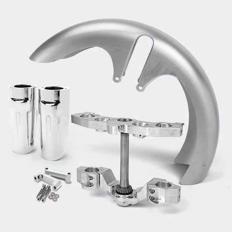 For models with fork covers, the kit must be ordered with our custom designed billet fork covers available in black, chrome or raw finish.