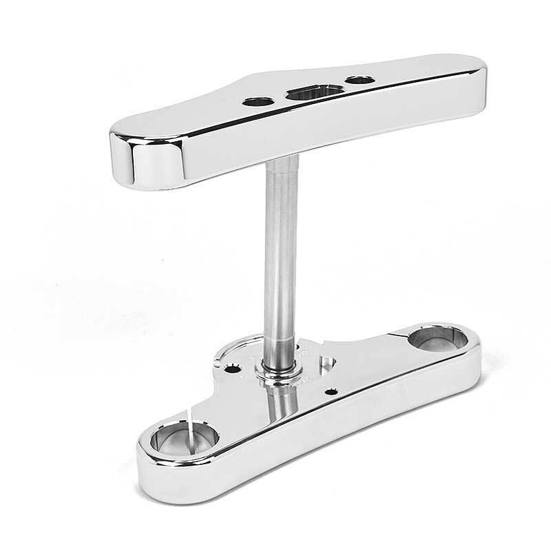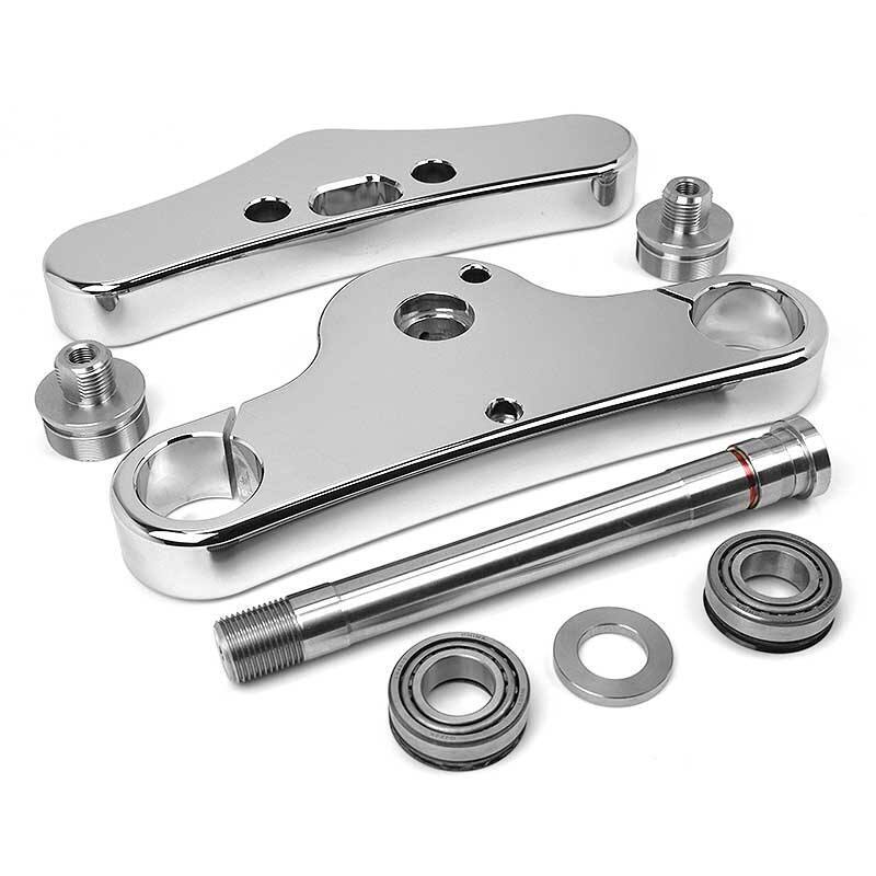 Triple Trees listed here are designed for a custom size wheel installation or trike conversion and are available in 3°, 5° and 6° rake. The 3° rake is recommended with a 21" size wheel, 5° rake for a 23” wheel and 6° rake for a 26” wheel. Trike conversions with stock wheels typically use the 5° rake.