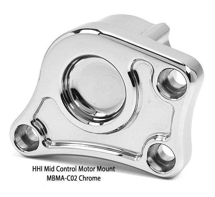 The New HHI Custom Motor Mount Bracket replaces the front right side factory motor mount & brake control bracket when installing HHI's New Mid Controls. Remove that factory cast iron mount and replace it with our super clean and stylish 6061 billet aluminum design. This stunning innovative design not only saves weight but delivers a much sleeker custom look and streamlines the mount.