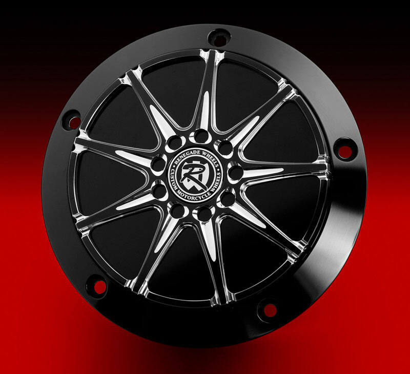 The Renegade Derby Cover is a stunning two piece engineered design. This allows our customers to choose the perfect combination of finishes to complete their bike with. The Derby Base Plate and the Derby Cover are machined from T6061 aircraft aluminum by craftsmen here in the USA. Both the base & cover come in show chrome or black anodized phantom cut and of course we offer cover designs to match all our Renegade or HHI wheel designs.