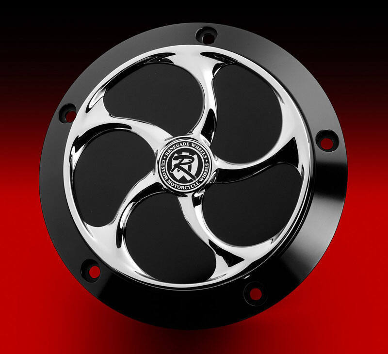 The Renegade Derby Cover is a stunning two piece engineered design. This allows our customers to choose the perfect combination of finishes to complete their bike with. The Derby Base Plate and the Derby Cover are machined from T6061 aircraft aluminum by craftsmen here in the USA. Both the base & cover come in show chrome or black anodized phantom cut and of course we offer cover designs to match all our Renegade or HHI wheel designs.