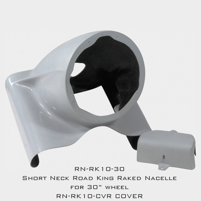 Road King Fiberglass Raked Nacelle, available for 26" wheel standard or shortneck or 30" shortneck application, includes Riser Cover. Choose option below.