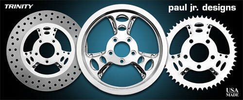 Our partnership with Renegade Wheels has allowed me to take each of my wheel designs from an idea to production. These new wheels give people the opportunity to incorporate one of my designs into their own motorcycle. Trinity Phantom-Cut also available in chrome Twice cut, twice the look… black anodized with raw cuts to give that edgy look. The Phantom-Cut wheels are back with a new twist. They are cut, polished, anodized to a slick ultra black finish. We then re-cut the wheel accents one more time and hand polish them to achieve the high luster that contrasts the ultra black finish.