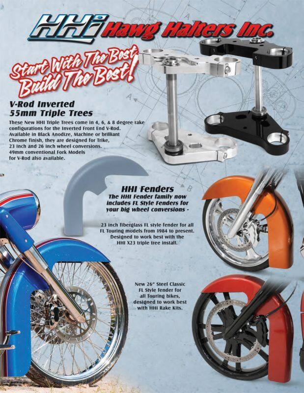 V-Rods are on the move and HHI now offers 4, 6, & 8 degree trees for Trike, 23 inch & 26 inch conversion, in both 49mm and 55mm inverted Triple Tree style.