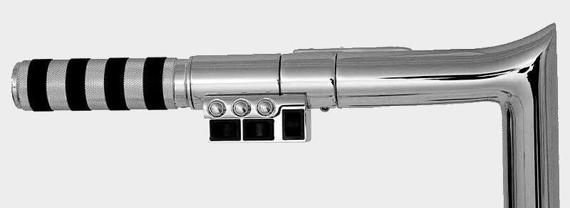 These classic, HHI designed and built bars come in Chrome or Black Powder Coat in 7, 9, and 11 inch sizes. The Speed King bars are available as a Bar only kit, or as a Complete HHI Handlebar System, complete with HHI Custom Hand Controls, completely pre wired, and ready for a direct bolt on installation.